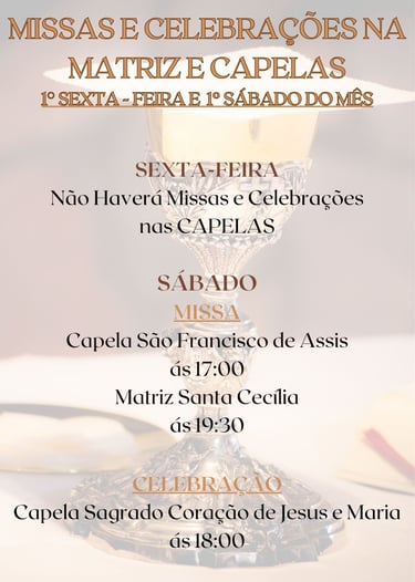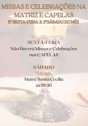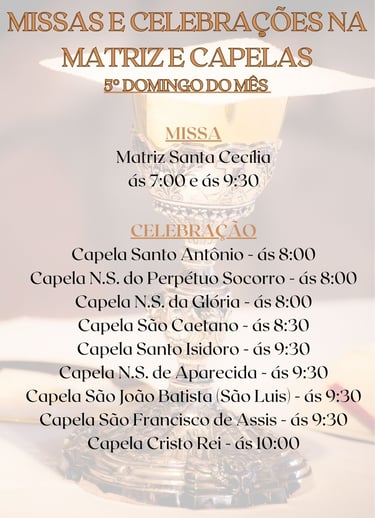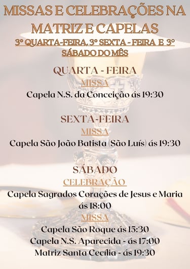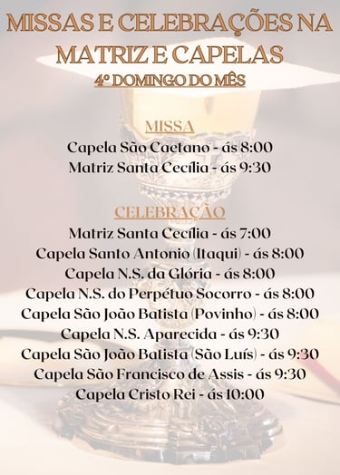 MÊS DE JANEIRO, TERÁ MISSAS E CELEBRAÇÕES APENAS NOS FINAIS DE SEMANA